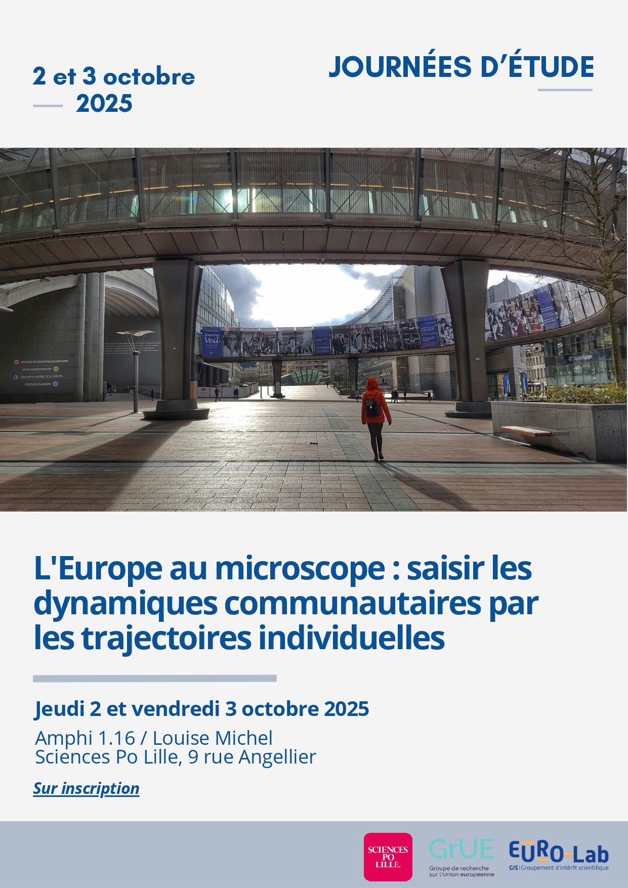 Sous la direction scientifique de Pierre ALAYRAC (Université Paris 8 Vincennes Saint-Denis) et Céleste BONNAMY (Sciences Po Lille), cette nouvelle édition du séminaire itinérant du GIS Euro-Lab visera à interroger les enjeux et les apports d'une analyse de l'Union européenne à travers des portraits et trajectoires individuels, et à partir des travaux des nombreux·ses intervenant·es invité·es.