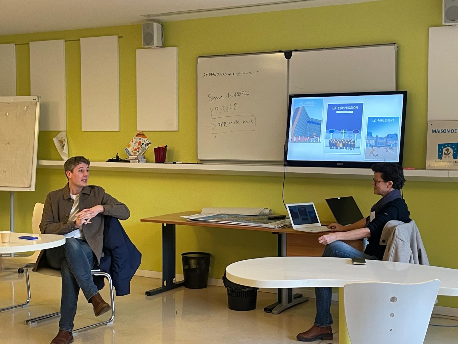 Deux jours durant, ce sont près de 80 participant·es et intervenant·es qui sont succédé·es pour échanger autour des enjeux de l'actualité scientifique européaniste. Parmi les temps forts, une plénière autour d'une cartographie des études européennes en France par Pierre Alayrac (Paris 8), Morgane Le Boulay (CNRS, Unistra) et Yiorgos Vassalos (ULB), un dialogue entre Justine Lacroix (ULB) et Éric Monnet (EHESS) autour de la notion de biens publics européens, et une table-ronde qui a interrogé la nécessité et la possibilité de décentrer les études européennes.